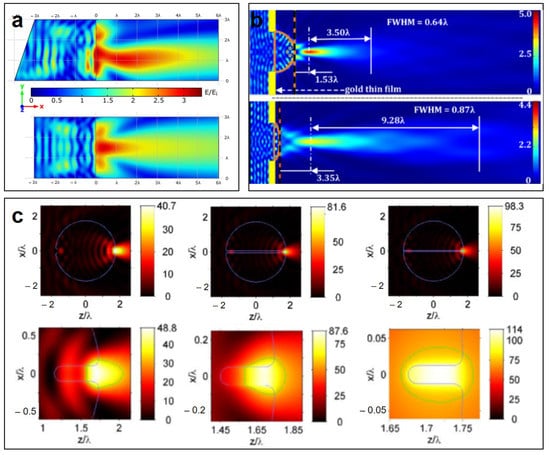 - Kim, M.S.; Scharf, T.; Mühlig, S.; Rockstuhl, C.; Herzig, H.P. Engineering photonic nanojets. Opt. Express 2011, 19, 10206–10220. [Google Scholar] [CrossRef]