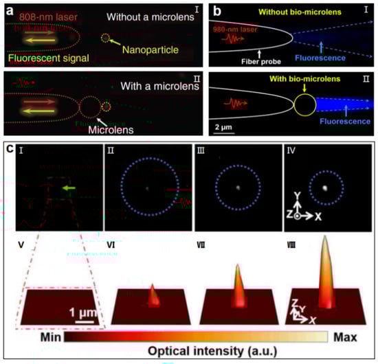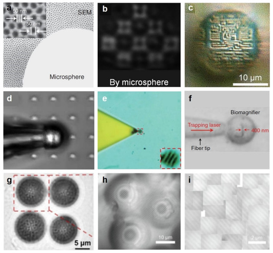 - Li, Y.; Liu, X.; Li, B. Single-cell biomagnifier for optical nanoscopes and nanotweezers. Light Sci. Appl. 2019, 8, 61. [Google Scholar] [CrossRef]