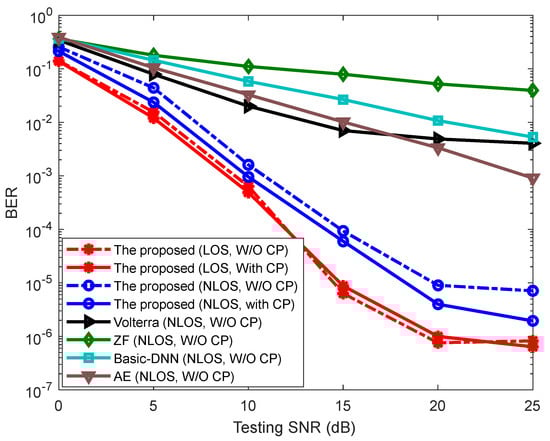 - The proposed scheme can still provide an excellent equalization performance even under cyclic prefix (CP) removal, which outperforms the traditional equalizers and demonstrates its powerful self-study and robustness ability of the DL approach.