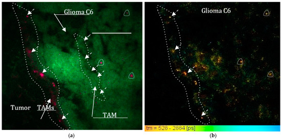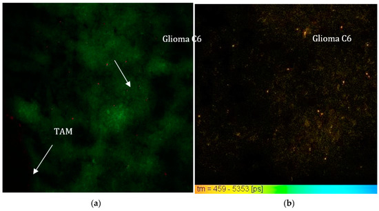 These studies should provide a basis for finding a correspondence between the temporal fluorescence characteristics of PS absorbed by different cells within a tumour and the phenotype of these cells, in particular with the possibility to quantify the presence of tumour-associated microglia and macrophages in tumour tissue along with cancer cells. As a result, it will be established how the quantitative ratio of tumour-associated macrophages/microglia influences the pattern of tumour progression.