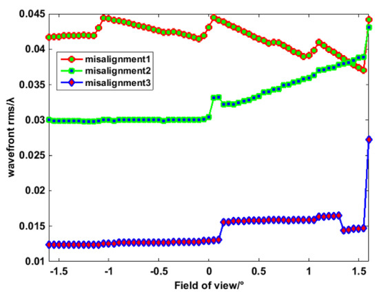 Residual wavefront errors in different fields of view for three misalignments.