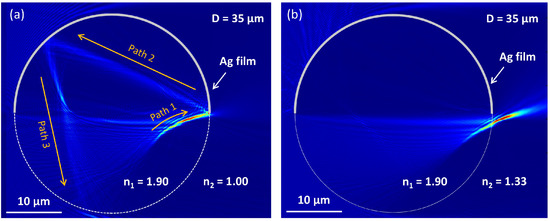 - Heifetz, A.; Kong, S.C.; Sahakian, A.V.; Taflove, A.; Backman, V. Photonic Nanojets. J. Comput. Theor. Nanosci. 2009, 6, 1979–1992. [Google Scholar] [CrossRef]