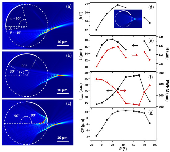 - Zhou, S. Twin photonic hooks generated from two adjacent dielectric cylinders. Opt. Quantum Electron. 2020, 52, 389. [Google Scholar] [CrossRef]