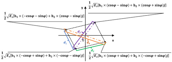 The BER performance of the SSD scheme is determined by the distance of the neighboring constellation symbols [21]. The distances between two edge symbols, denoted as and , respectively, can be expressed as