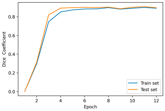 Individual Dice coefficients for both the training and test sets during training are shown in Figure 2 for Epi Detector. For both Epi Edema Detector and Stroma Edema Detector, individual Dice coefficients during training are shown in Figure 3 for the training set and in Figure 4 for the test set.