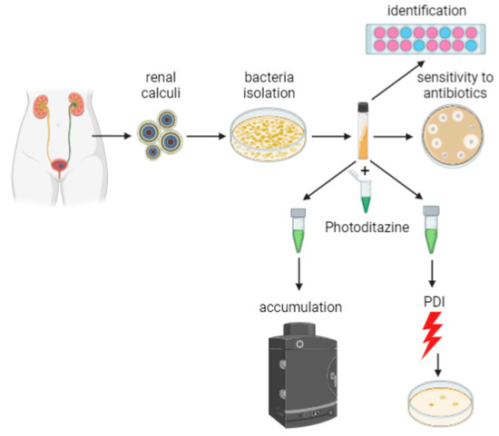 The purpose of the study was complex analysis of bacteria associated with renal calculi as a model for photodynamic inactivation.