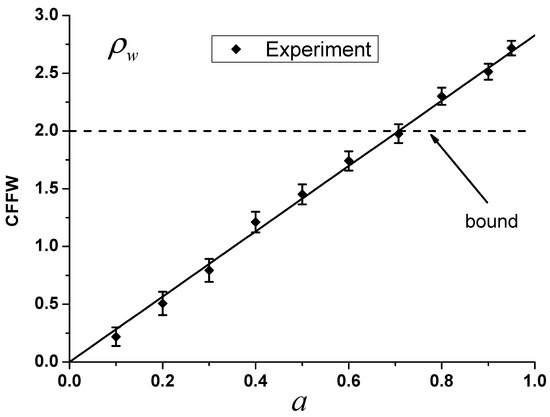 for , {−45°,21.3°,−3.1°} for , {−45°,34.6°,−25.1°} for and {−45°,1.2°,−41.9°} for . Figure 5 shows the measurement violation of CFFW inequality still varies linearly with parameter a. At the point , the experimental data is , which denotes Werner states are steerable when , based on the CFFW inequality.