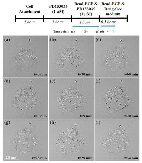 3.3. The Effect of PD153035 on the EGF–EGFR Transport Pathway