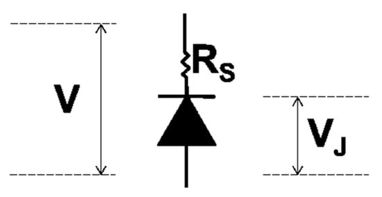 Equation (19) assumes that the voltage drops VJ (junction voltage) at the ideal diode and the external bias only differ by a series ohmic contribution (Figure 4).