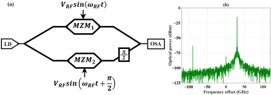 - Li, X.; Zhao, S.; Zhu, Z.; Qu, K.; Lin, T.; Pan, S. An optical frequency shifter based on high-order optical single-sideband modulation and polarization multiplexing. J. Lightwave Technol. 2016, 34, 5094–5100. [Google Scholar] [CrossRef]