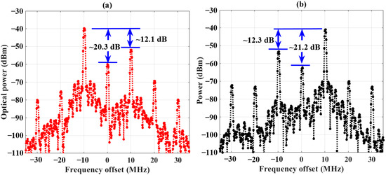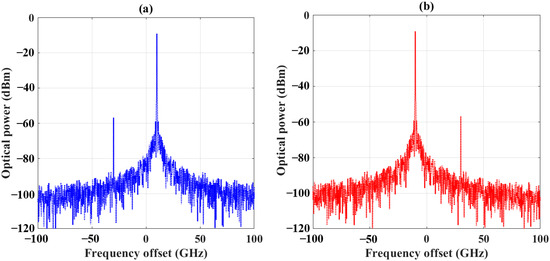 - Li, J.; Li, Z. Frequency-locked multicarrier generator based on a complementary frequency shifter with double recirculating frequency-shifting loops. Opt. Lett. 2013, 38, 359–361. [Google Scholar] [CrossRef]