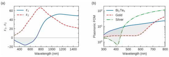 To investigate the capabilities of Bi2Te3 in contrast to traditionally used metals, Figure 1b shows the plasmonic FOM [39], which was calculated using