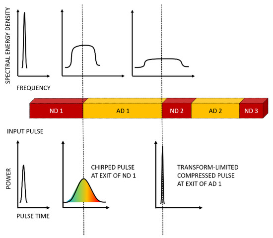 - Lüpken, N.M.; Fallnich, C. Bandwidth-limited few-cycle pulses by nonlinear compression in a dispersion-alternating fiber. Appl. Phys. B 2020, 126, 1–7. [Google Scholar] [CrossRef]