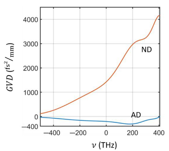 3.2. AD GVD in the Dispersion-Dominated Regime