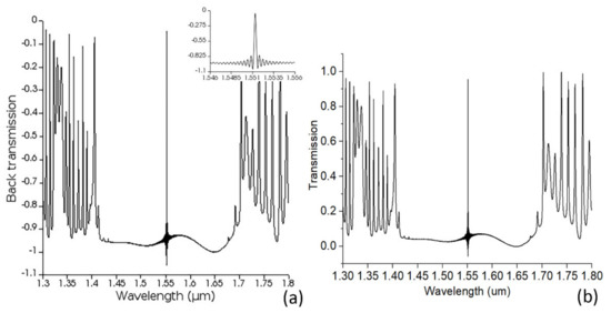 - Jiang, X.; Wu, J.; Yang, Y.; Pan, T.; Mao, J.; Liu, B.; Liu, R.; Zhang, Y.; Qiu, C.; Tremblay, C.; et al. Wavelength and bandwidth-tunable silicon comb filter based on Sagnac loop mirrors with Mach- Zehnder interferometer couplers. Opt. Express 2016, 24, 555–559. [Google Scholar] [CrossRef] [PubMed]