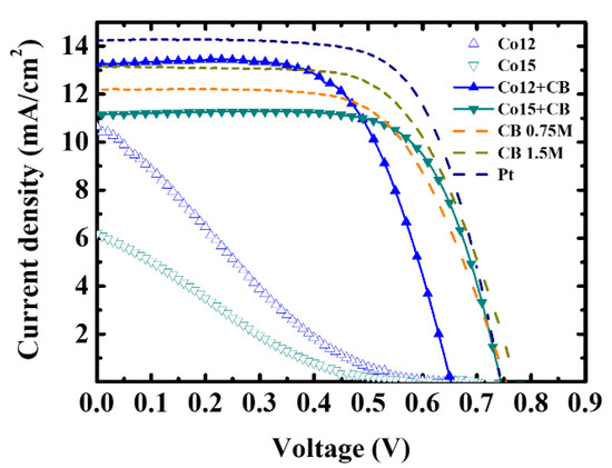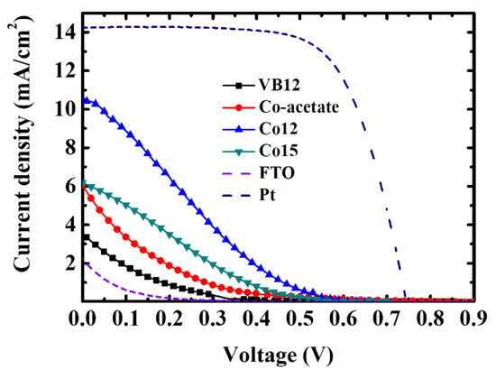 J–V characteristics of DSSCs with series of cobalt complex CEs.