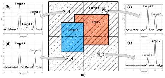 (a) Sub-region segmentation and the echo of each sub-region in the scanning step of T_1. (b–e) The multi echoes of the region N_1–N_4.