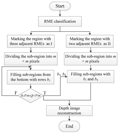 Step 5. Depth image reconstruction. The depth image of RSE is enhanced to m × m pixels. Then the super-resolution depth image of the target is reconstructed by combining the depth images of RSE and the region I and II.
