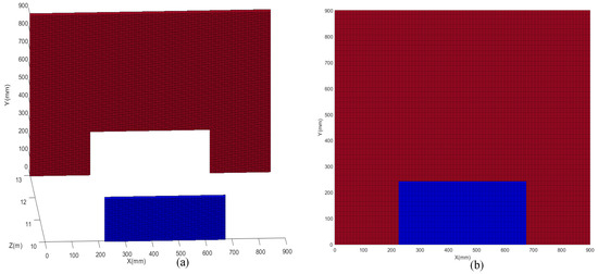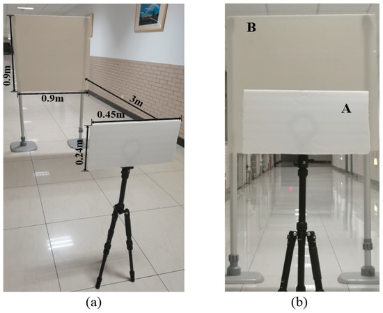 The target is composed of two plates with the size of 0.45 × 0.24 m and 0.9 × 0.9 m respectively. The distance between the two plates is 3 m, shown in Figure 9.
