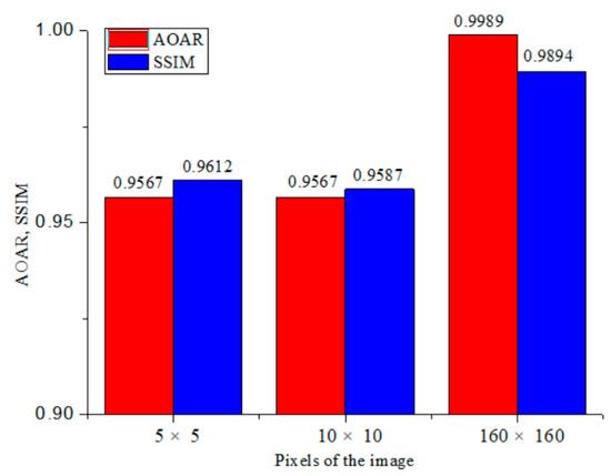 We compare each reconstructed depth image with the real depth image of the target. The AOAR and SSIM [32] between each reconstructed depth image and the real depth image are shown in Figure 14.