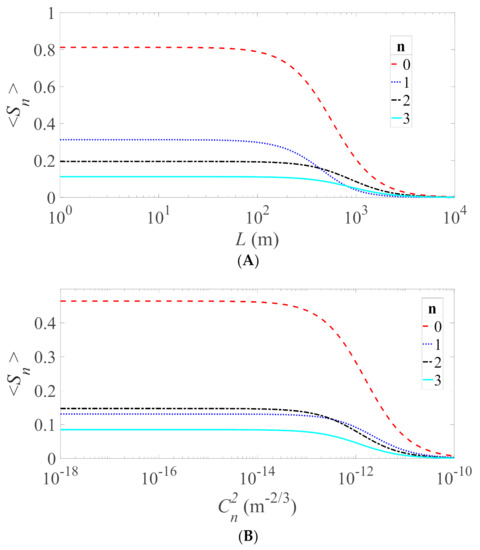 Figure 1 shows the average Stokes parameters Sn (n = 0, 1, 2, 3) of the most general EM GSM beam propagating in the weak atmospheric turbulence. In Figure 1A, the value of is fixed while the propagation distance L is set to vary. The decay rates of the Stokes parameters depend on the choice of the source r. m. s. correlations. Figure 1B shows the average Stokes parameters at a fixed distance L with varying values of the . Starting from the value and higher, the average Stokes parameters decrease to zero due to the effects of turbulence.