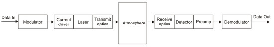 4]. Nowadays, FSO systems use near infrared (NIR, 0.7–1.4 µm) or short wavelength infrared (SWIR, 1.4–3 µm) radiation to transmit information as the “last mile” link [