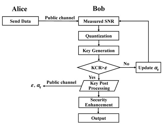 The key quantization optimization process is shown in Figure 3. Alice and Bob extract channel characteristics of the SNR, quantify and code to generate the key, and generate the key with excellent consistency and security after post-processing. The specific steps are as follows: