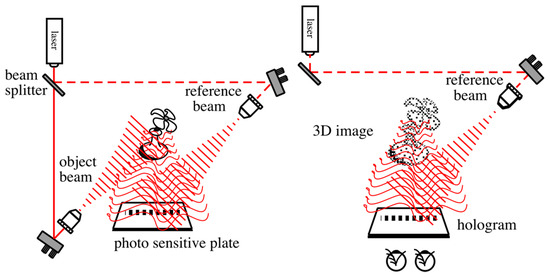 - Leith, E.N.; Upatnieks, J. Wavefront Reconstruction with Diffused Illumination and Three-Dimensional Objects. J. Opt. Soc. Amer. 1964, 54, 1295–1301. [Google Scholar] [CrossRef]
