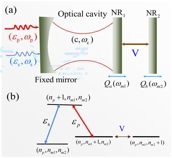 - Lai, D.-G.; Zou, F.; Hou, B.-P.; Xiao, Y.-F.; Liao, J.-Q. Simultaneous cooling of coupled mechanical resonators in cavity optomechanics. Phys. Rev. A 2018, 98, 023860. [Google Scholar] [CrossRef] [Green Version]