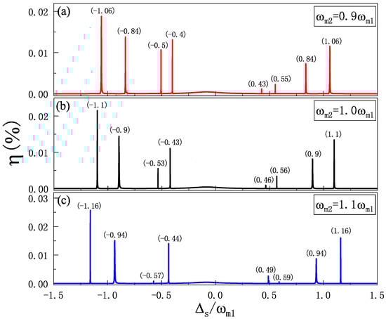 - Xiong, H.; Si, L.G.; Zheng, A.S.; Yang, X.; Wu, Y. Higher-order sidebands in optomechanically induced transparency. Phys. Rev. A 2012, 86, 013815. [Google Scholar] [CrossRef] [Green Version]