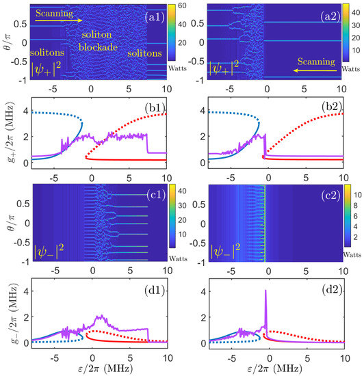 - Fan, Z.; Skryabin, D.V. Soliton blockade in bidirectional microresonators. Opt. Lett. 2020, 45, 6446. [Google Scholar] [CrossRef]