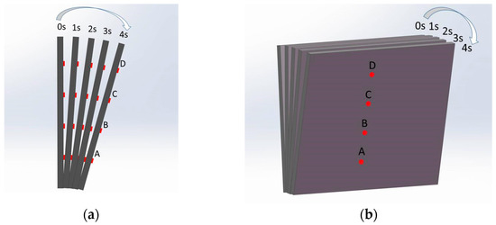 The dynamic displacement map of the microchip over time: (a) left view; (b) front view.