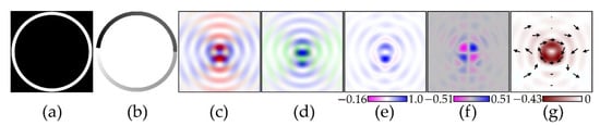 Figure 5 shows the simulation results for the input field, which is a narrow ring with a phase function g1(φ) from Equation (37).