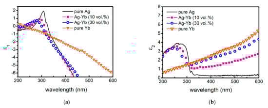 Here, and , which can be inferred from the measured dielectric constants for Ag and Yb. For the mixture with Yb concentration X, the dielectric constant in a first-order approximation is given by the volume average: