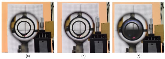 Photographs taken of the experimental system, in the cases when the object was invisible and when it was not, in the first zone for mm. (a) Invisible object. (b) Height limit. The object begins to be visible. (c) Visible object.