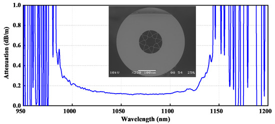 - Pryamikov, A.D.; Biriukov, A.S.; Kosolapov, A.F.; Plotnichenko, V.G.; Semjonov, S.L.; Dianov, E.M. Demonstration of a waveguide regime for a silica hollow-core microstructured optical fiber with a negative curvature of the core boundary in the spectral region >3.5 μm. Opt. Express 2011, 19, 1441–1448. [Google Scholar] [CrossRef]