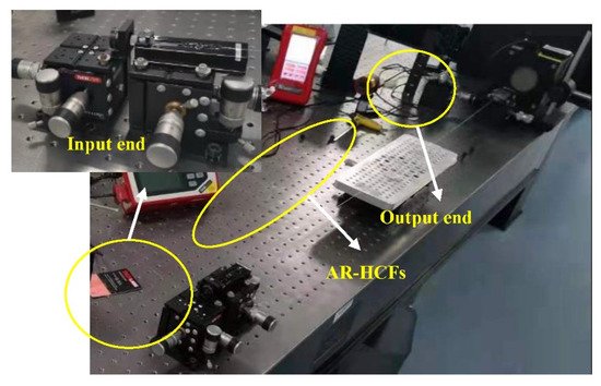 Picture of the fabricated all-fiber gas cavity based on AR-HCFs and end caps in the test system.