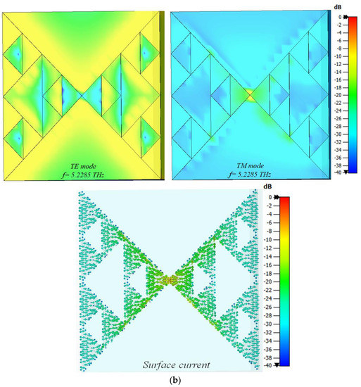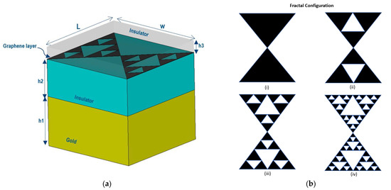 - Mishra, R.; Panwar, R. Investigation of graphene fractal frequency selective surface loaded terahertz absorber. Opt. Quantum Electron. 2020, 52, 317. [Google Scholar] [CrossRef]