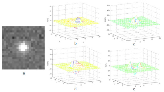 Second-order derivative characteristics of star in four directions: (a) the star point and (b–e) the three-dimensional distribution of the star point.