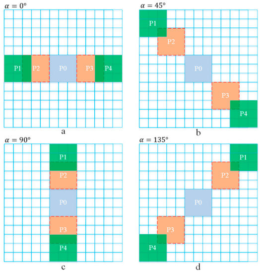 The second-order derivative in four directions of and can be obtained according to Equations (7) and (8), which can be used for subsequent calculations.