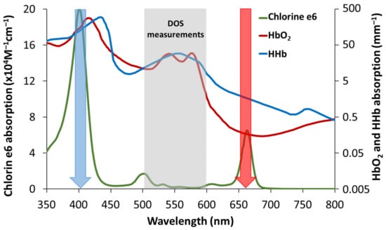 - Dong, J.; Toh, H.J.; Thong, P.S.; Tee, C.S.; Bi, R.; Soo, K.C.; Lee, K. Hemodynamic monitoring of chlorin e6–mediated photodynamic therapy using diffuse optical measurements. J. Photochem. Photobiol. B Biol. 2014, 140, 163–172. [Google Scholar] [CrossRef]