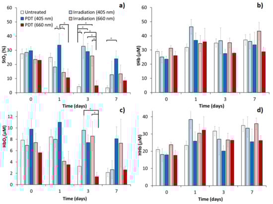 - Schouwink, H.; Oppelaar, H.; Ruevekamp, M.; van der Valk, M.; Hart, G.; Rijken, P.; Baas, P.; Stewart, F.A. Oxygen depletion during and after mthpc–mediated photodynamic therapy in rif1 and h–meso1 tumors. Radiat. Res. 2003, 159, 190–198. [Google Scholar] [CrossRef]