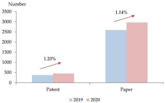 Patents and papers on machine learning in photonics have received increasing attention, and the increase in the number of patents (1.20%) is similar to that of papers (1.14%).