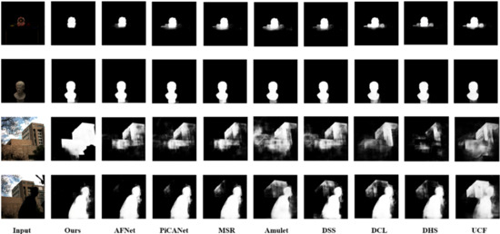 - Pingping, Z.; Dong, W.; Huchuan, L.; Hongyu, W.; Xiang, R. Amulet: Aggregating multi-level convolutional features for salient object detection. In Proceedings of the IEEE international conference on computer vision, Venice, Italy, 22–27 October 2017; pp. 202–211. [Google Scholar]