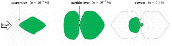 As shown in [,,,], during the formation of the crystal structure, the particles accumulate on the surface of the solid front, associated with its displacement during the growth of the solid phase. The mechanism of particle layer migration depends on freezing front speed, initial volume fraction of particles and other parameters, but it always leads to compaction of the particles in local areas of the sample. Decrease in the photon mean free path in densely packed layers of particles compared to its value for the liquid suspension contributes to a sharp increase in the efficiency of the SHG process under optical pumping.