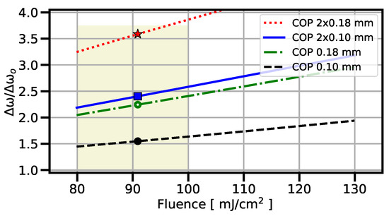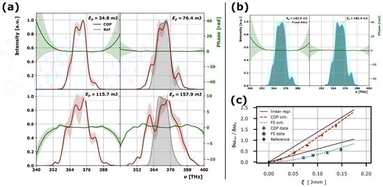 - Mironov, S.Y.; Fourmaux, S.; Lassonde, P.; Ginzburg, V.N.; Payeur, S.; Kieffer, J.C.; Khazanov, E.A.; Mourou, G. Thin plate compression of a sub-petawatt Ti:Sa laser pulses. Appl. Phys. Lett. 2020, 116, 241101. [Google Scholar] [CrossRef]