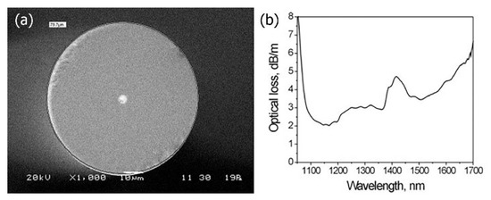 - Egorova, O.N.; Semenov, S.L.; Velmiskin, V.V.; Yatsenko, Y.P.; Sverchkov, S.E.; Galagan, B.I.; Denker, B.I.; Dianov, E.M. Phosphate-core silica-clad Er/Yb-doped optical fiber and cladding pumped laser. Opt. Express 2014, 22, 7632–7637. [Google Scholar] [CrossRef]