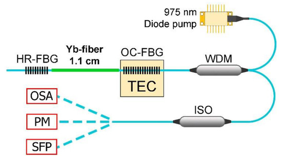 - Kaneda, Y.; Spiegelberg, C.; Geng, J.; Hu, Y.; Luo, T.; Wang, J.; Jiang, S. 200-mW, narrow-linewidth 1064.2-nm Yb-doped fiber laser. In Proceedings of the Conference on Lasers and Electro-Optics/International Quantum Electronics Conference and Photonic Applications Systems Technologies, San Francisco, CA, USA, 16–21 May 2004; p. CThO3. Available online: http://opg.optica.org/abstract.cfm?URI=CLEO-2004-CThO3 (accessed on 5 September 2022).