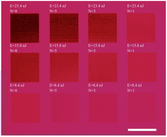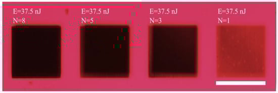 The diameter of each element of these structures increased with increasing energy, as well as the numbers of pulses (Figure 3).