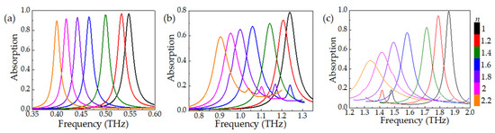 3.3. Sensing Characteristics of Triple-Band THz Metamaterial Absorber
